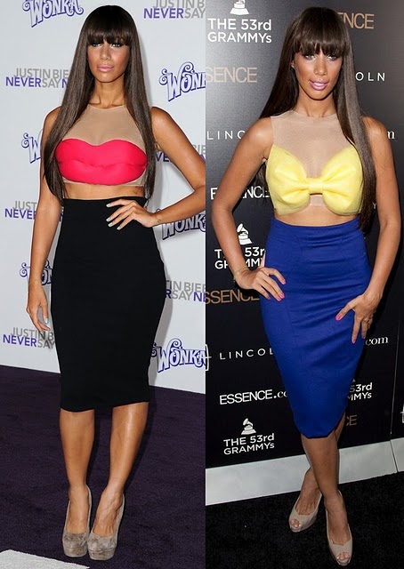 So Leona went from looking Classy and fabulous to Bazaar and weird? is she trying to make a statement with her new look and grab the medias attention? Darker colored hair with bangs, high waisted skirt with a cropped top? love the color blocking but am not sure about her new look entirely! what do u think?