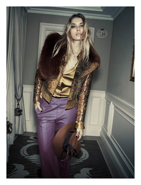 Jessica Hart looks stunning in the Elle Spain spread for this August. Wearing a mix of masculine and feminine  wardrobe from the Gucci Autumn Collection, styled by Inmaculada Jimenez.