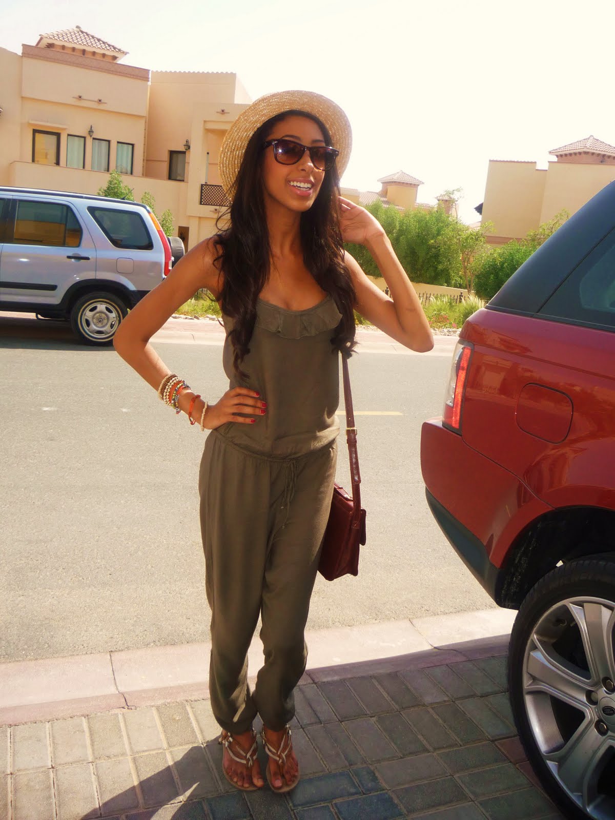 Jumpsuit Bershka, Hat + jewellery h&m, Sandals + bag Primark, + Raybans