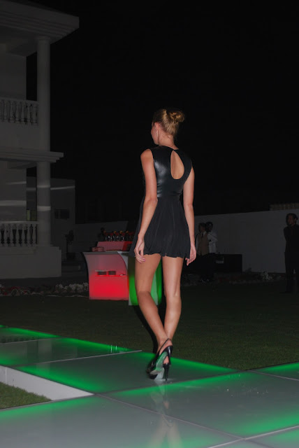 The dress code was Black or White, I wore white as I think I have had enough of Black! I was expecting a quiet and small preview of her collection, little did we all know it was a privet Catwalk show! Walking in to all the lights and colors on the chairs, tables and a runway which changes color as soon as you step on it! I loved every bit of it