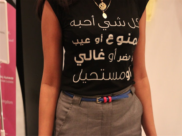 I was going through one of my FAVORITE Saudi blogs Paper Umbrella by Alaa Balkhy and stumble on this  T-Shirt designer, Qabila Apparel! Can you say she just describe my life in this top? “Everything I love is forbidden, shameful, harmful, expensive or impossible” LOVE IT, WANT IT, NEED IT!