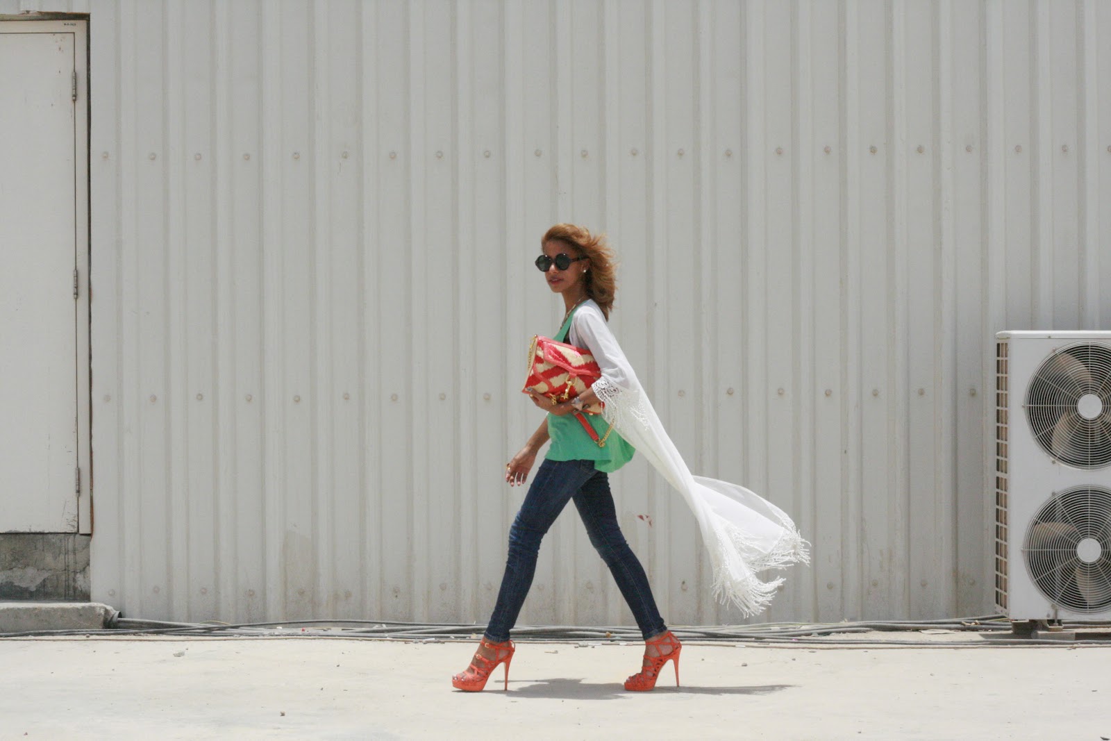 Top by TopShop, Shoes by Burak Uyan, Jeans By Zara, Bag by Rebecca Minkoff, Cardigan by For The Love Of & House Of Harlow 1960 necklace (both available at West L.A), Shades Quay gifted by Namshi