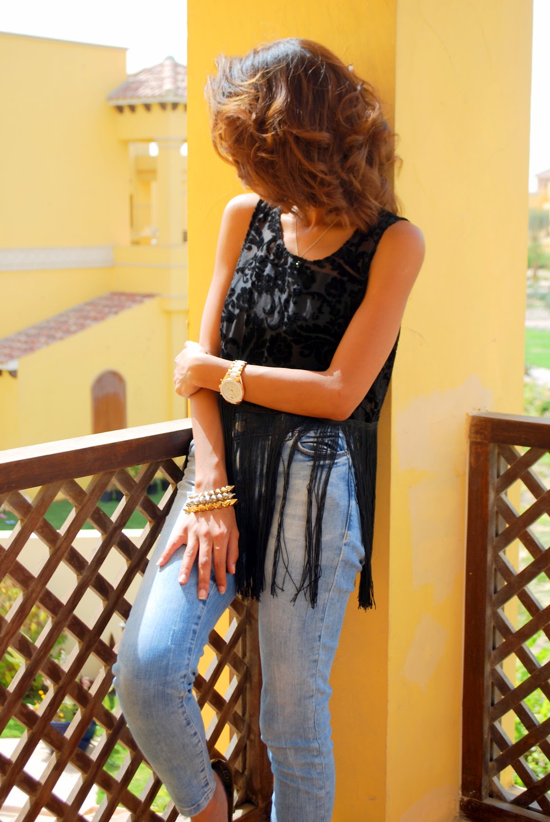 Top by Forever21, Jeans by Zara, Spiked bracelets CCSkye & Forever21, Watch by Emporio Armani Gifted by 1915