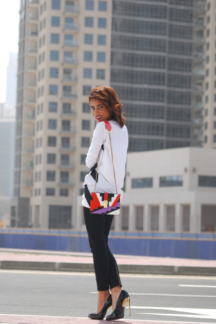 Top by Lili.Aiya, Zara leggings, Giuseppe Zanotti Heels, Angel Jackson bag